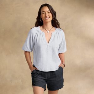 Lace and eyelet patchwork details create a melody of beauty on our oh so feminine relaxed fit top with ruching at the front yoke. collar with henley placket and shirttail hem. Cotton/Other Fiber. Hand wash. Imported. Exclusive. Sizes XS (0–2). S (4–6). M (8–10). L (12–14). XL (16–18). XXL (20–22). Approx. 26.5l.