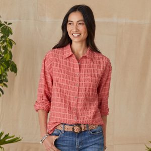 With a crinkle texture. front pocket and roll-up sleeves. this button-up shirt provides timeless comfort and style. Tencel/Rayon/Nylon. Machine Wash. Imported. Sizes XS (0-2). S (4-6). M (8-10). L (12-14). XL (16-18). XXL (20-22). Approx. 27.25l.