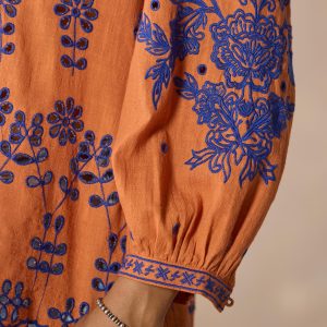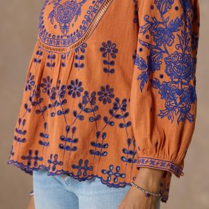 Stunning allover embroidery adds wonder and beauty to our vibrant notch neckline top graced with ladder lace insets. eyelet details and ruffles at the neckline. Bracelet length sleeves. Camisole sold separately. Cotton. Machine wash. Imported. Exclusive. Sizes XS (0–2). S (4–6). M (8–10). L (12–14). XL (16–18). XXL (20–22). Approx. 26l.