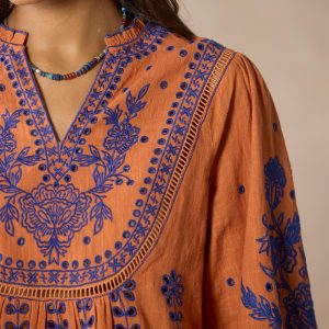 Stunning allover embroidery adds wonder and beauty to our vibrant notch neckline top graced with ladder lace insets. eyelet details and ruffles at the neckline. Bracelet length sleeves. Camisole sold separately. Cotton. Machine wash. Imported. Exclusive. Sizes XXS (00). XS (0?C2). S (4?C6). M (8?C10). L (12?C14). XL (16?C18). Approx. 24l.