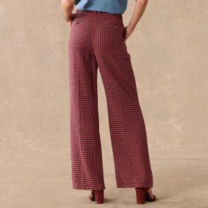 Our wide-leg trouser pants in a mini houndstooth plaid are so stylish. with faux horn buttons. double pleats. interior waistband extension for easy adjustments and four pockets. Contrast floral print at inner waistband. Cotton/linen. Machine wash. Imported. Exclusive. Sizes 0?C14. 29 inseam.