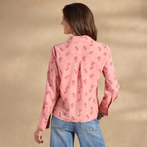 Soft and light. our mid length floral shirt is the perfect blend of comfort and style with shirring details at the front yoke. side slits. novelty cuffs with single button closure and two front patch pockets. Lyocell. Machine wash. Imported. Exclusive. Sizes XS (0?C2). S (4?C6). M (8?C10). L (12?C14). XL (16?C18). XXL (20?C22). Approx. 22l.