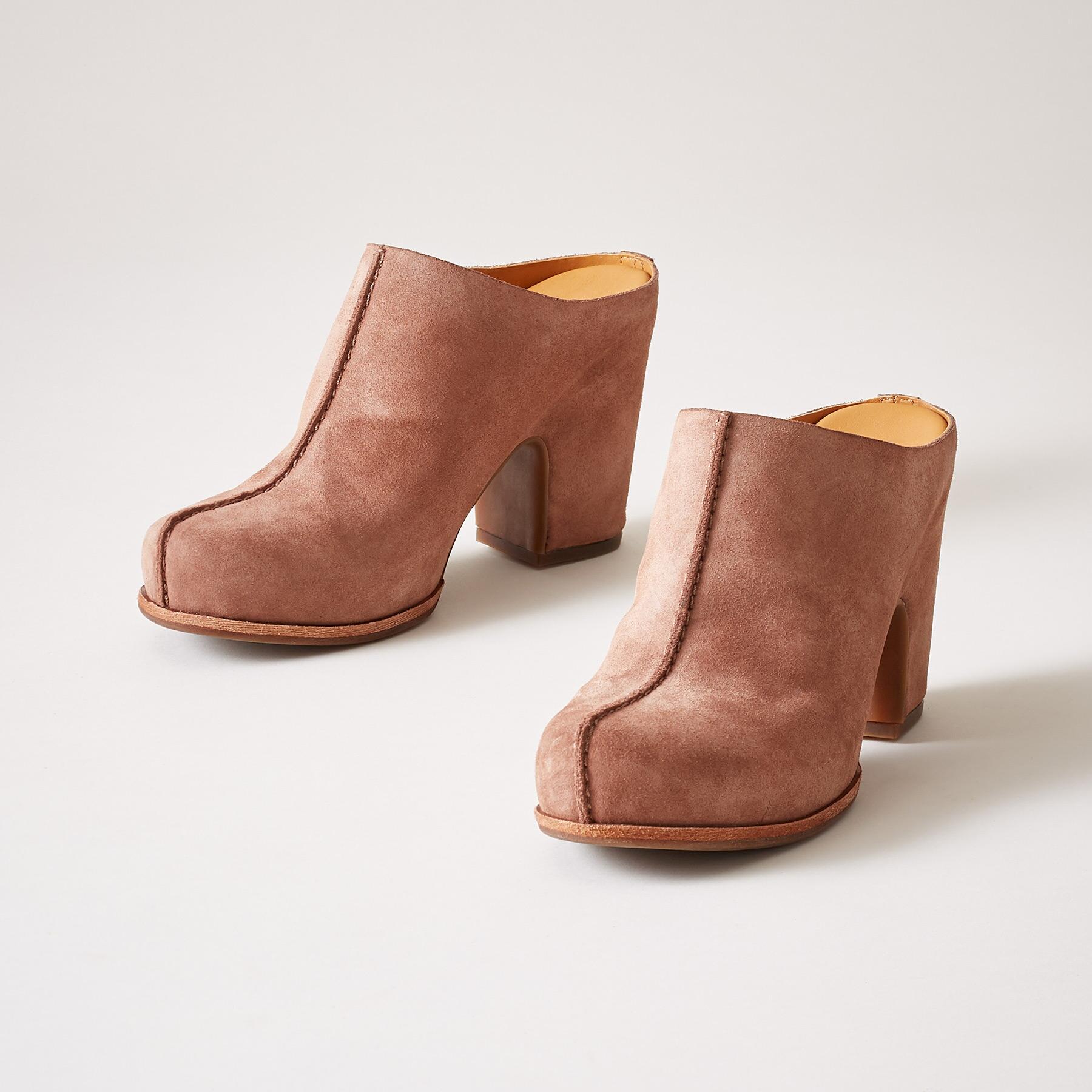 Elevated and artful. the Sagano Mules blend sculptural style with everyday sophistication. Crafted in rich leather. these bold slip-ons feature a hand-shaped wooden sole. a distinctive cutout heel. and minimalist stitching that highlights their refined silhouette. A modern statement with timeless soul.