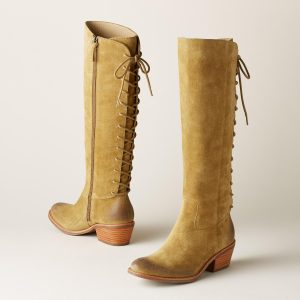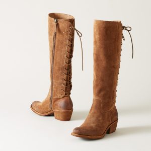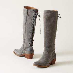 Fully adjustable lacing provides a perfect fit in these beautifully crafted. suede and leather boots by S???fft?. Imported. Whole and half sizes 6-10. 11. 2 heel.