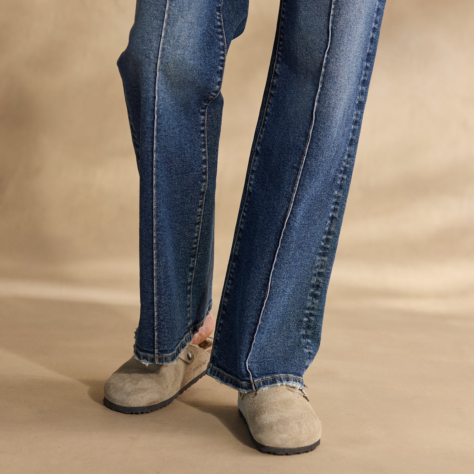 So stylish and comfortable. our unique jeans with seaming detail at the front legs. Five pocket. ankle-length straight leg with a high rise. Cotton/spandex. Machine wash. Imported. Sundance exclusive. Sizes 24-32. 27 or 29 inseam.