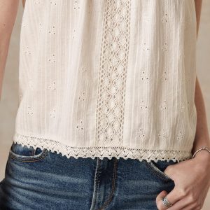 Vintage-inspired. oh-so-feminine camisole with beautiful tonal embroidery and lace details at neckline and front. Adjustable straps and elastic at back neck for comfortable fit. Cotton/viscose. Machine wash. Imported. Exclusive. Sizes XS (0?C2). S (4?C6). M (8?C10). L (12?C14). XL (16?C18). XXL (20?C22). Approx. 25l.